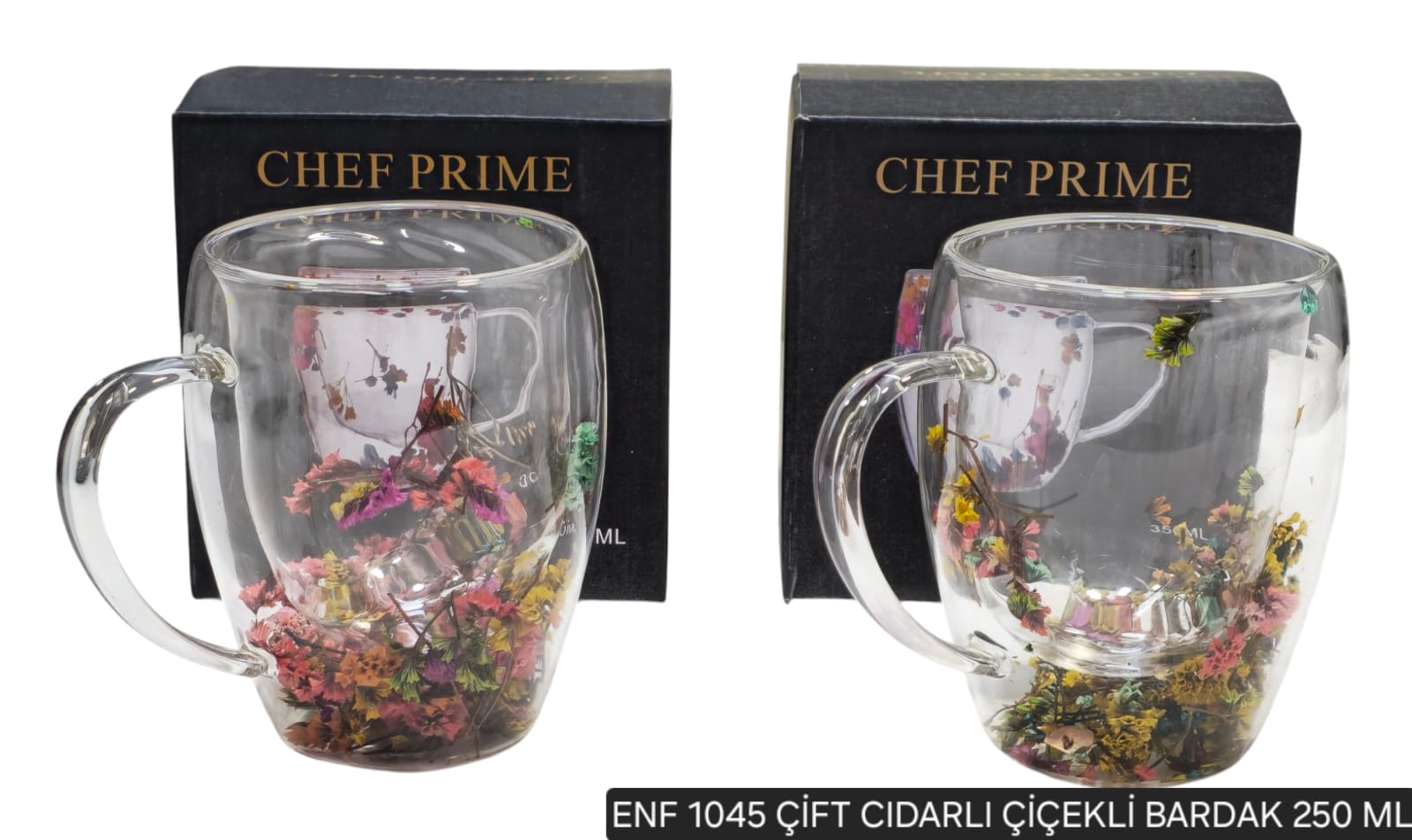 1045 ÇİFT CIDARLI ÇİÇEKLİ BARDAK 250 ML